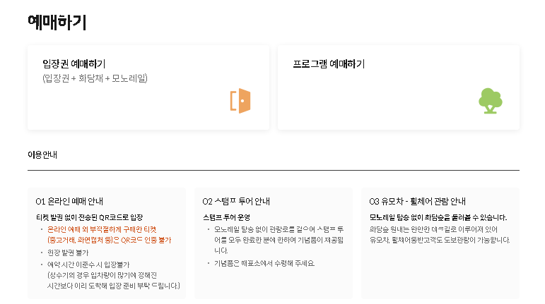 기존에는 화담숲 입장 과 모노레일 에 관해 예약을 했었는데 올해는 화담채를 구경할수 있도록 추가되어있습니다.